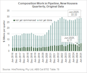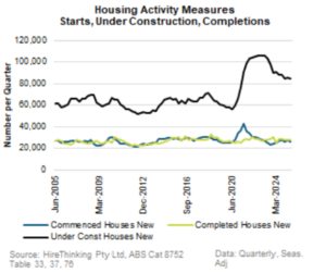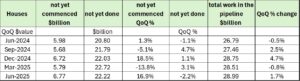 Interestingly, Houses under Construction were 84,760 well below the peak of 106,117 reached in March 2023 and moving closer to industry capacity which historically have averaged about 60-62,000 Houses under Construction at any one time. However, rather than reflecting gains in capacity with an increasing rate of completions, progress on Houses under Construction was because commencements fell at a greater rate than completions during the quarter.