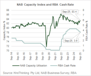 The NAB capacity index rose further in September to 83.4% the highest level since June 2024.