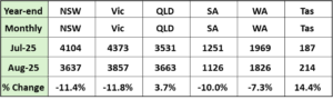 If we look at that by state the monthly data showed negative results for all mainland states except Queensland.