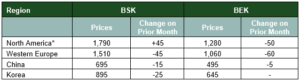 North America was the sole market to see prices increase, as a direct result of local tariffs