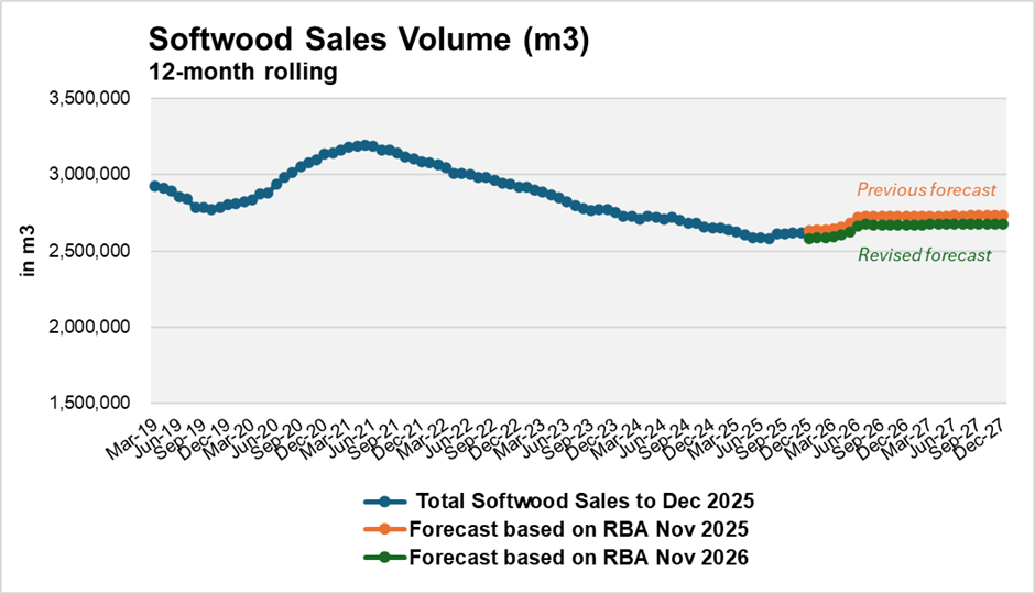 Figure 3: Softwood Sales Volume (12-month rolling) – Actual and Medium-Term Projection