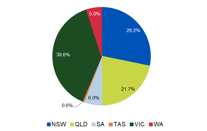 Australian Sawn Softwood Imports by State of Delivery: 2025 (%)